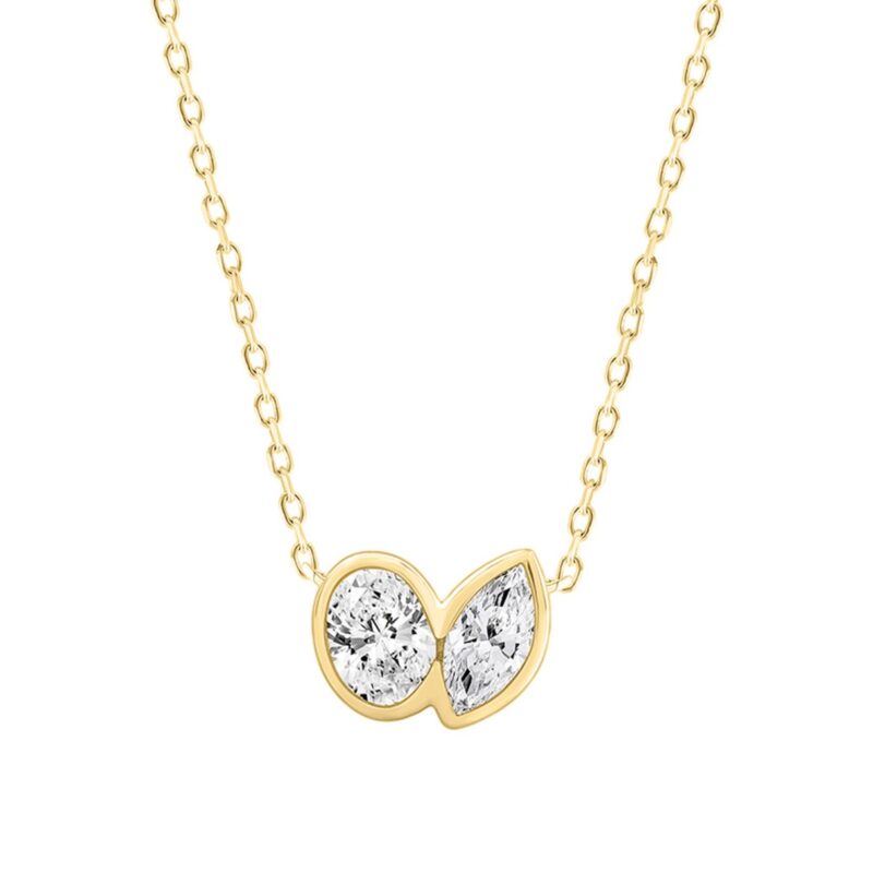 ETERNAL BLUSH COLLECTION LADIES PENDANT 1 1/4CT ROUND/PEAR DIAMOND 14K YELLOW GOLD WITH CHAIN (CENTER STONE PINK PEAR DIAMOND 1CT)