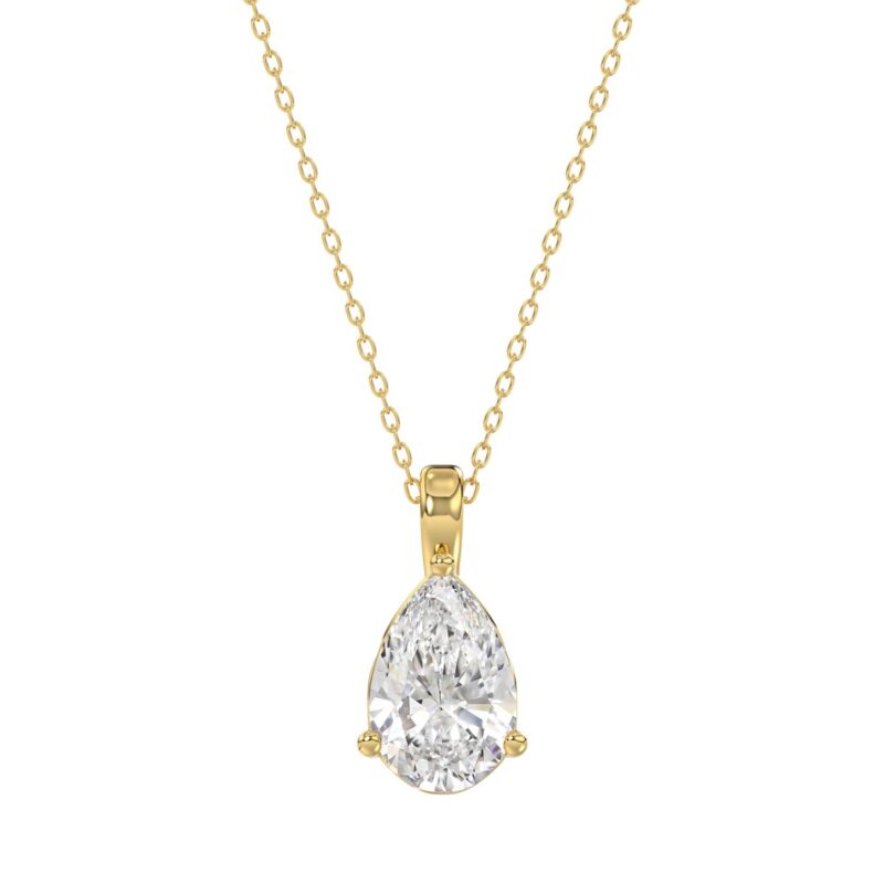 LADIES SOLITAIRE PENDANT WITH CHAIN 2CT PEAR DIAMOND 14K YELLOW GOLD