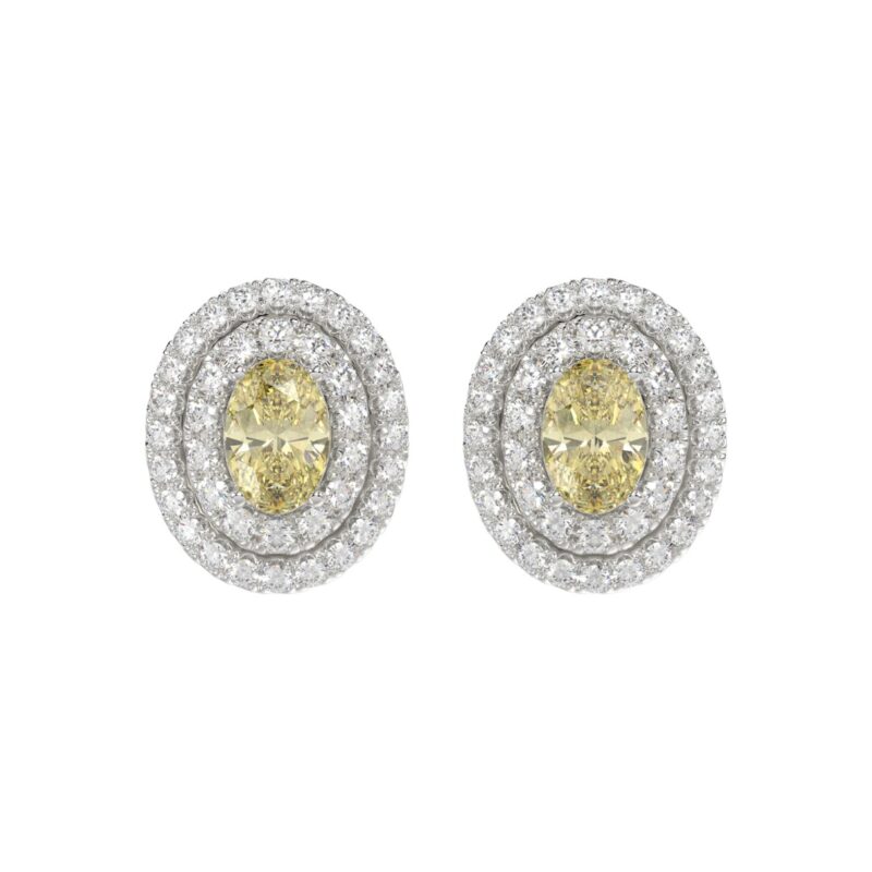 14K WHITE GOLD CRAFTED WITH 18K YELLOW GOLD BACK PLATE 1 3/4CT ROUND/YELLOW OVAL DIAMOND LADIES EARRINGS