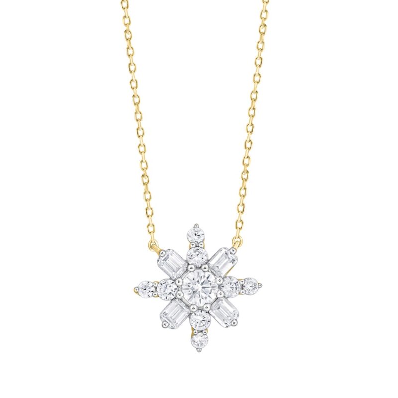 LADIES PENDANT 1 1/2CT ROUND/EMERALD DIAMOND 14K YELLOW GOLD WITH CHAIN
