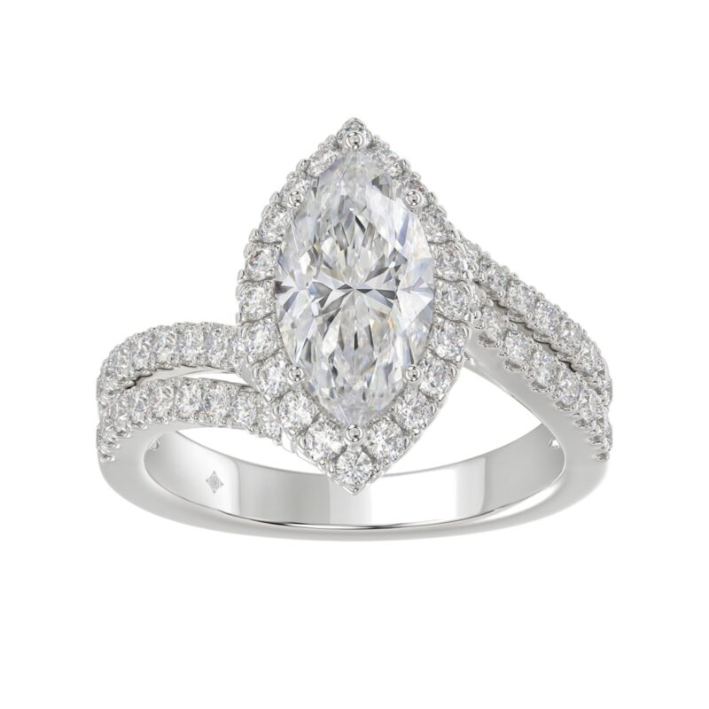 14K WHITE GOLD 2 3/4CT ROUND/MARQUISE DIAMOND LADIES RING (CENTER STONE MARQUISE DIAMOND 2CT)