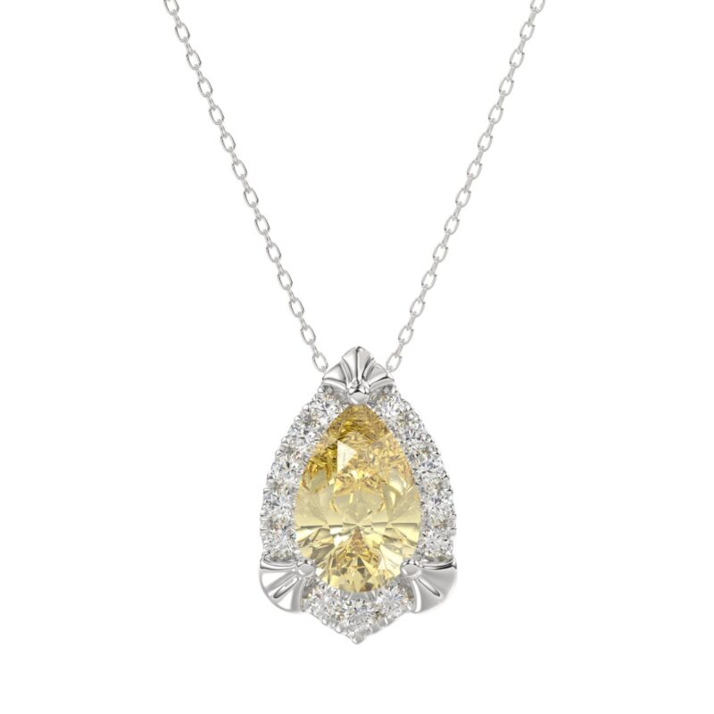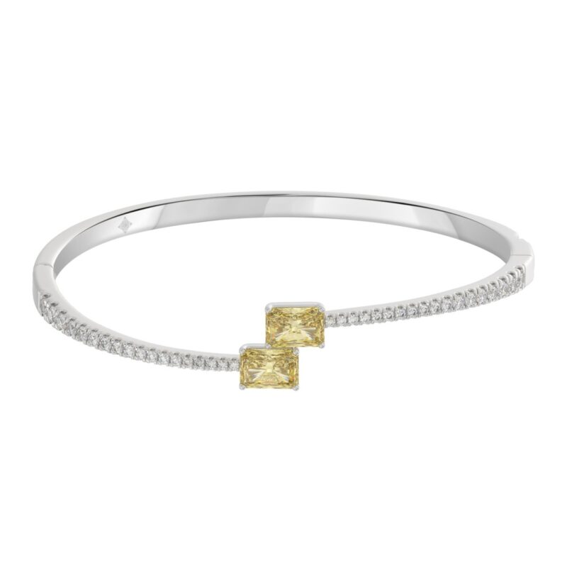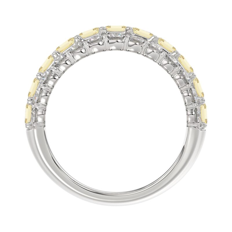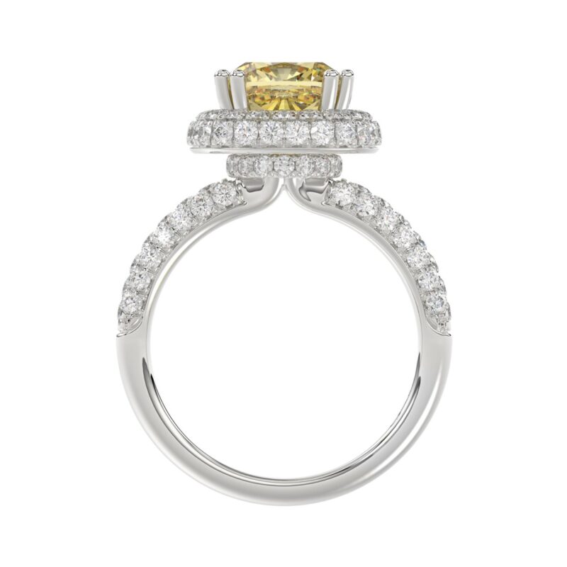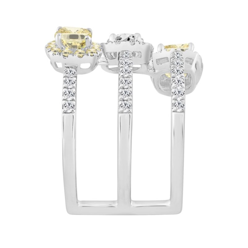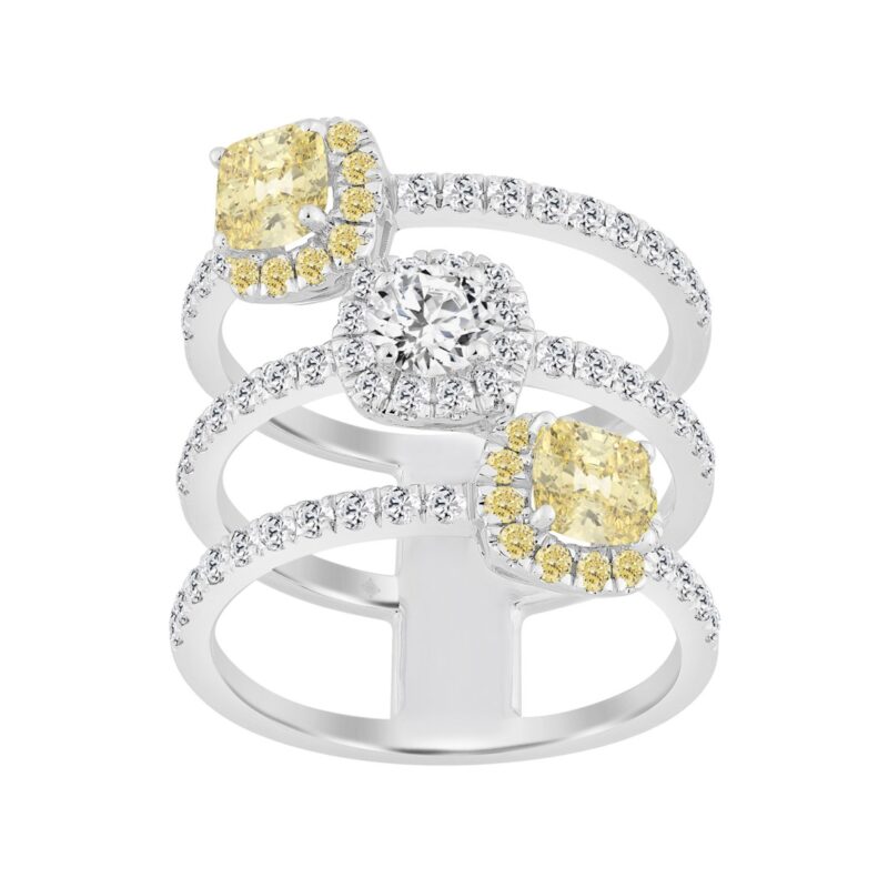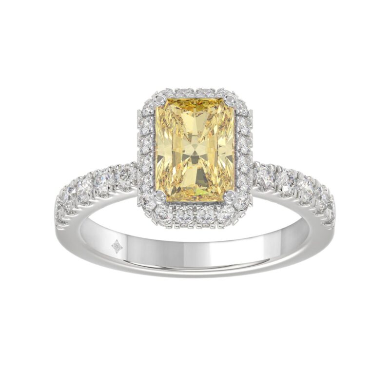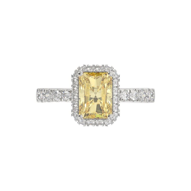 1 1/2CT Elegance Ring 14k Round/Radiant/Trapezoid Diamond White Gold 1.00CT Yellow Radiant Center stone (Color F-G -Clarity VS1/VS2)