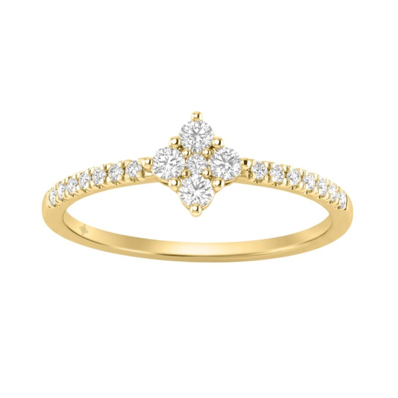 0.15Ct Fashion Cluster Ring For Women 10K Yellow Gold Baguette & Round Cut