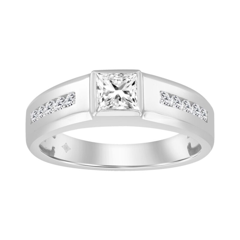14K WHITE GOLD 1.00CT ROUND/PRINCESS DIAMOND MEN’S RING (CENTER STONE PRINCESS DIAMOND 3/4CT)