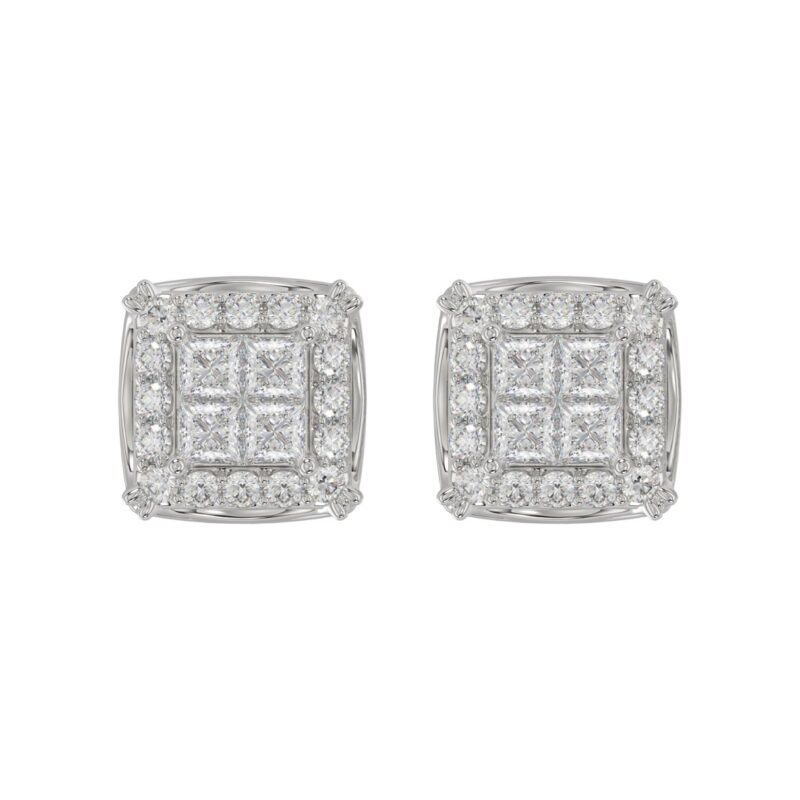 14K WHITE GOLD 1CT ROUND/PRINCESS DIAMOND MEN’S EARRINGS