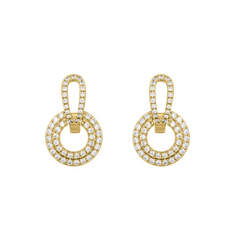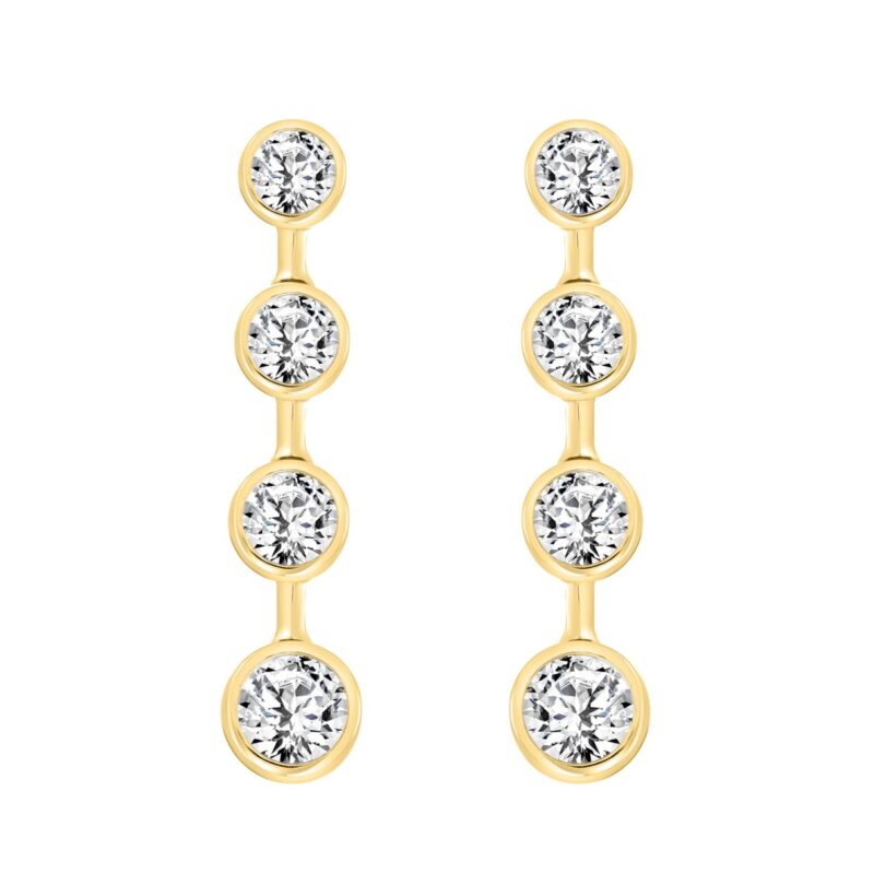 LADIES LINEAR EARRINGS 2CT ROUND DIAMOND 14K YELLOW GOLD