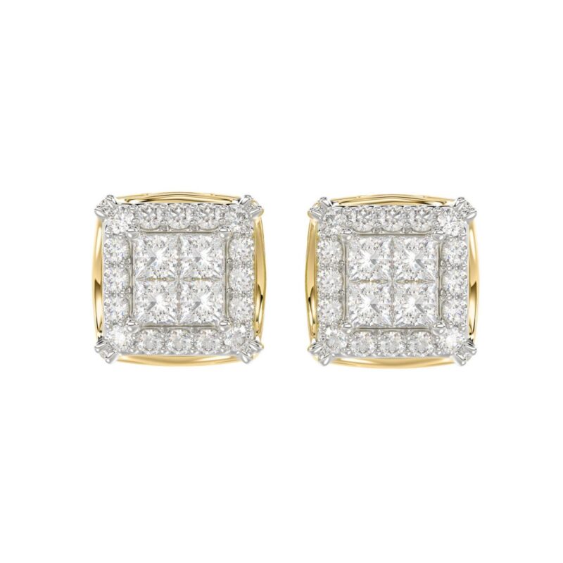 14K YELLOW GOLD 1CT ROUND/PRINCESS DIAMOND MEN’S EARRINGS