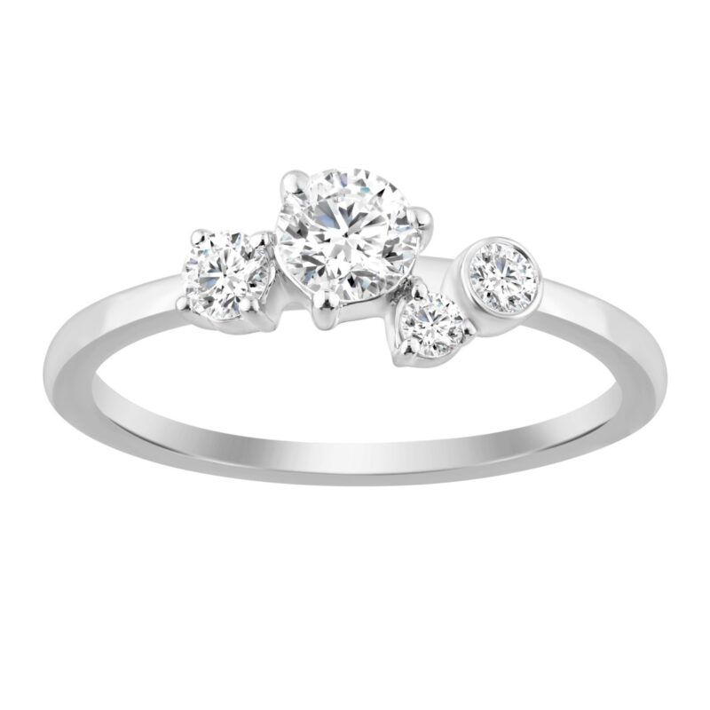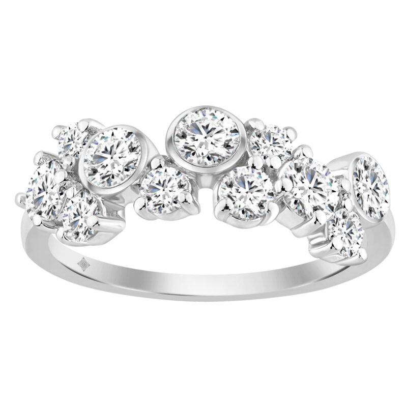1.00CT Round Diamond Bezel Cluster Fashion Ring for Women in 14K White Gold (Color F-G -Clarity VS1/VS2)