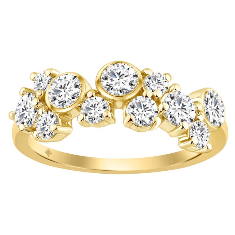 1.00CT Round Diamond Bezel Cluster Fashion Ring for Women in 14K Yellow Gold (Color F-G Clarity VS1/VS2)