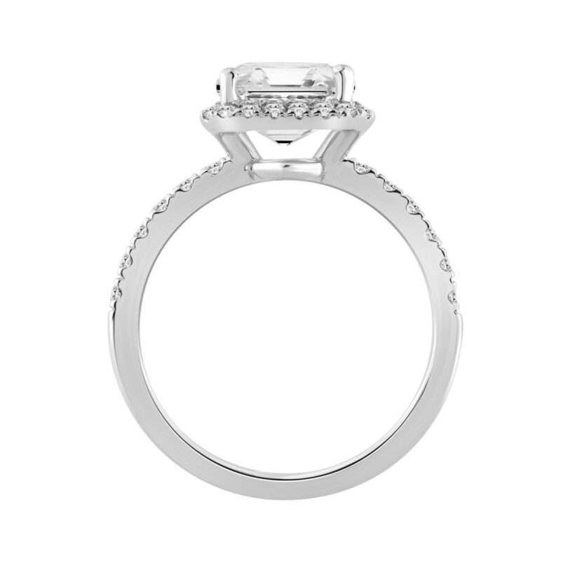 10K White Gold 4 1/2CT ladies Round & Emerald-cut diamond halo engagement Ring 4.00CT Emerald Center stone (Color F-G -Clarity VS1/VS2)