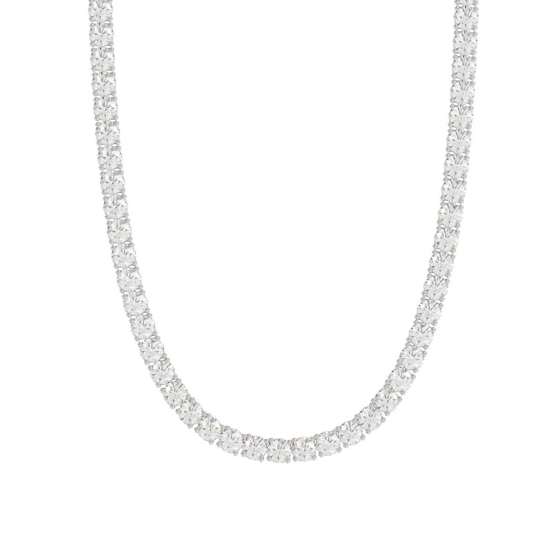 14K WHITE GOLD 4 3/4CT 18″ ROUND DIAMOND LADIES TENNIS NECKLACE