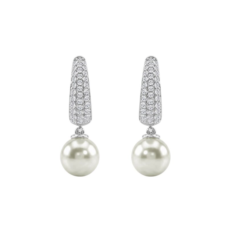 10K White Gold 1/2 Ct Round Diamond & Pearl Hoop Earrings For Women Classic Pear Shape Drop Fine Jewelry (Color F-G Clarity Vs1/Vs2)