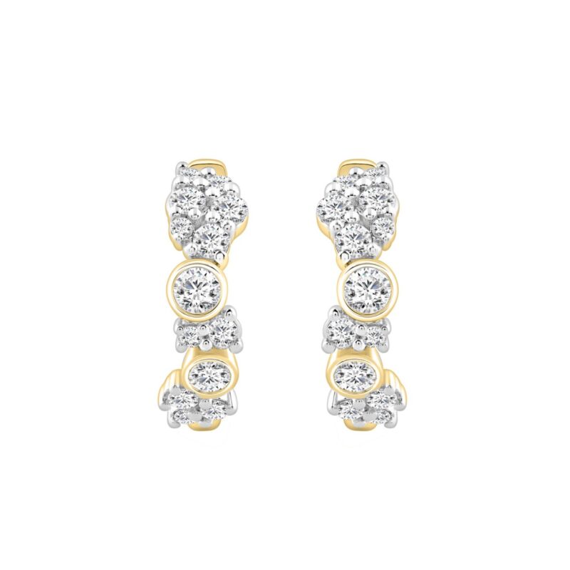 10K Yellow Gold 3/4CT Round Diamond Hoop Earrings for Women (Color F-G -Clarity VS1/VS2)