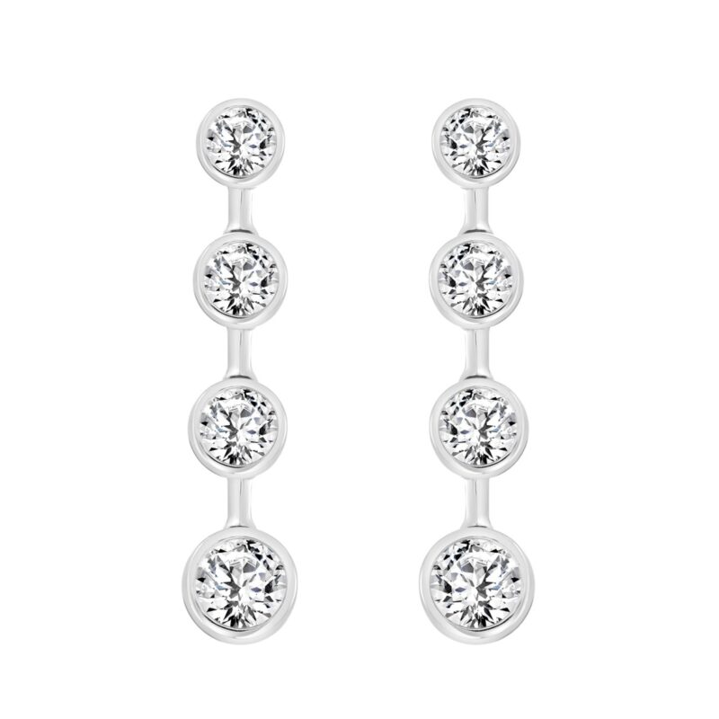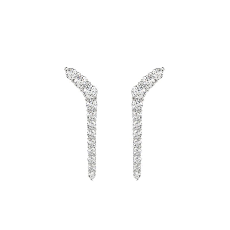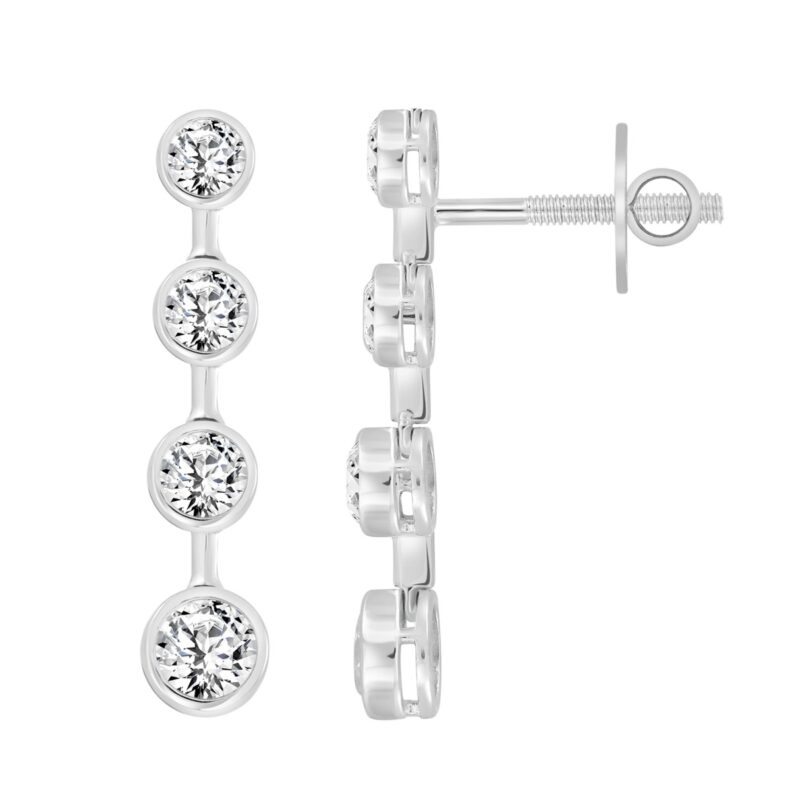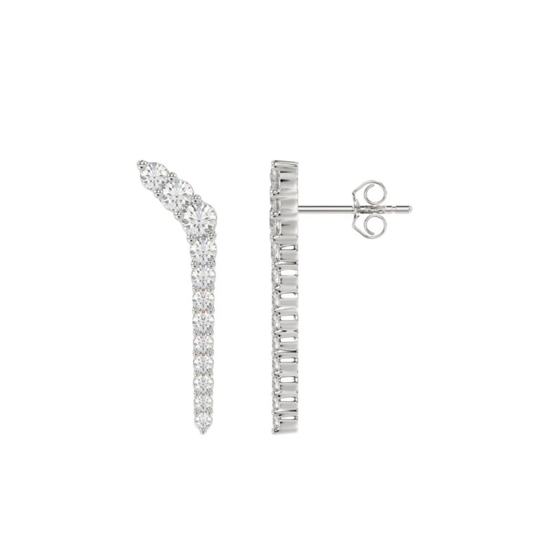 LADIES LINEAR EARRINGS 2CT ROUND DIAMOND 14K WHITE GOLD