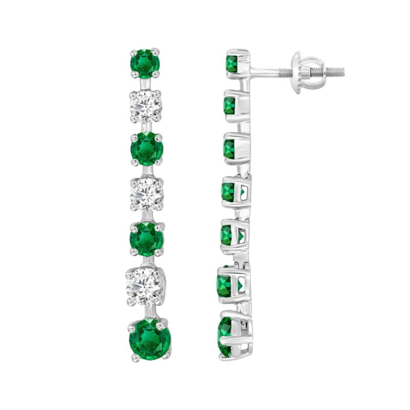 14K WHITE GOLD 3.00CT ROUND DIAMOND LADIES EARRINGS (GREEN EMERALD ROUND 2 1/5CT)