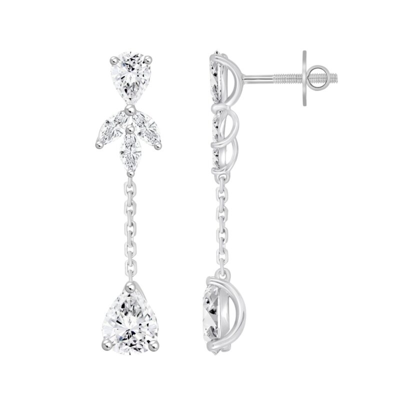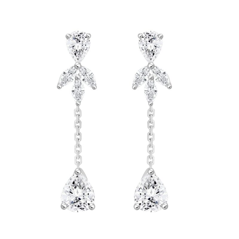 LADIES LINEAR EARRINGS 6CT MARQUISE/PEAR DIAMOND 14K WHITE GOLD