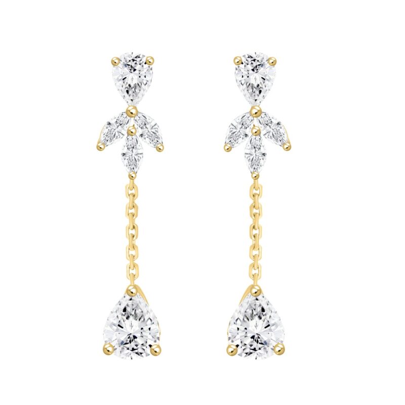 LADIES LINEAR EARRINGS 6CT MARQUISE/PEAR DIAMOND 14K YELLOW GOLD