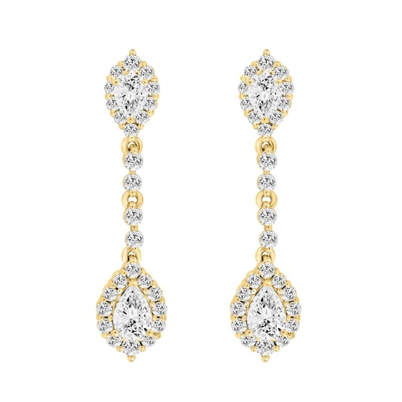 LADIES LINEAR EARRINGS 2 3/4CT PEAR/ROUND DIAMOND 14K YELLOW GOLD (CENTER STONE PEAR DIAMOND 1CT )