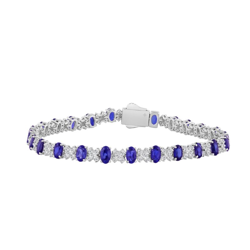 14K WHITE GOLD 10 3/8CT ROUND/TANZANITE OVAL DIAMOND LADIES BRACELET