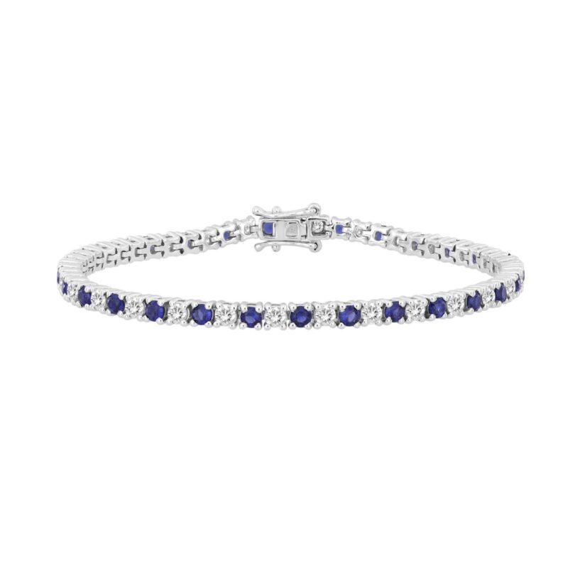 14K WHITE GOLD 5 3/8CT ROUND/BLUE SAPPHIRE ROUND DIAMOND LADIES BRACELET (BLUE SAPPHIRE ROUND 3CT)