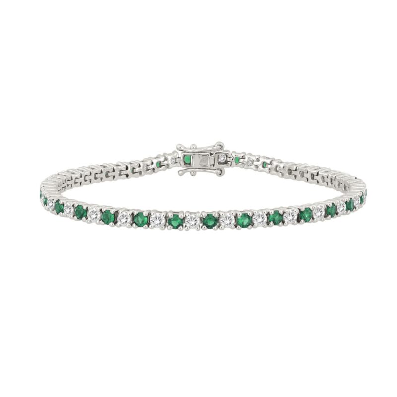 14K WHITE GOLD 5 3/8CT ROUND/EMERALD ROUND DIAMOND LADIES BRACELET (ROUND EMERALD 3CT)