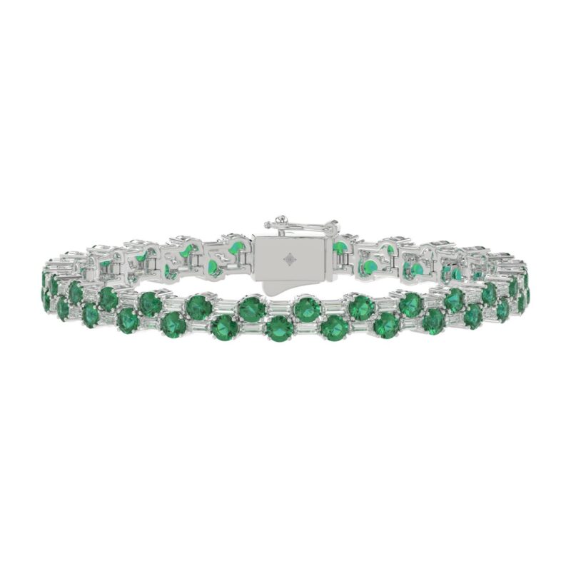 14K WHITE GOLD 8.00CT BAGUETTE/ROUND DIAMOND LADIES BRACELET (GREEN EMERALD ROUND DIAMOND 6 5/8CT)
