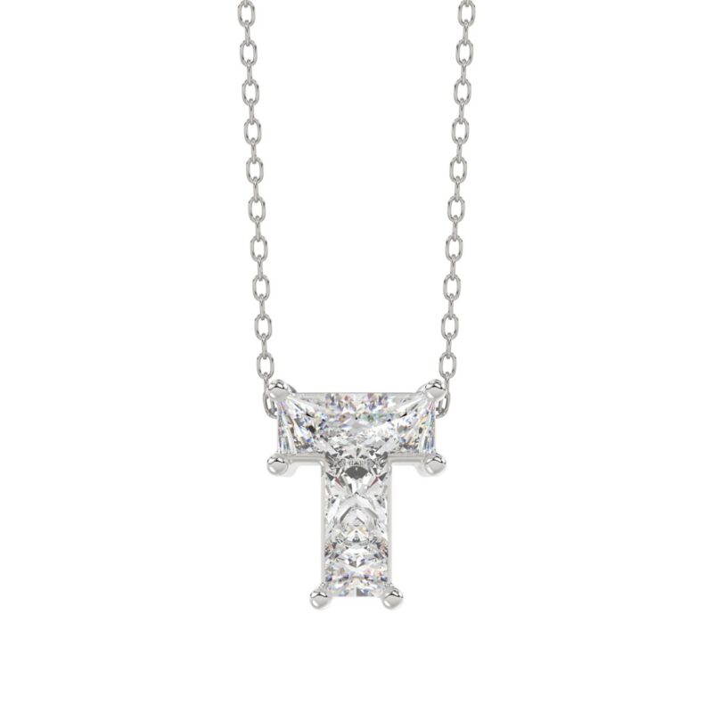 10K WHITE GOLD 1.00CT FANCY CUT ALPHABET DIAMOND LADIES PENDANT WITH CHAIN