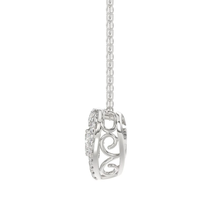 14K WHITE GOLD 1 1/2CT ROUND DIAMOND LADIES FLOWER PENDANT WITH CHAIN