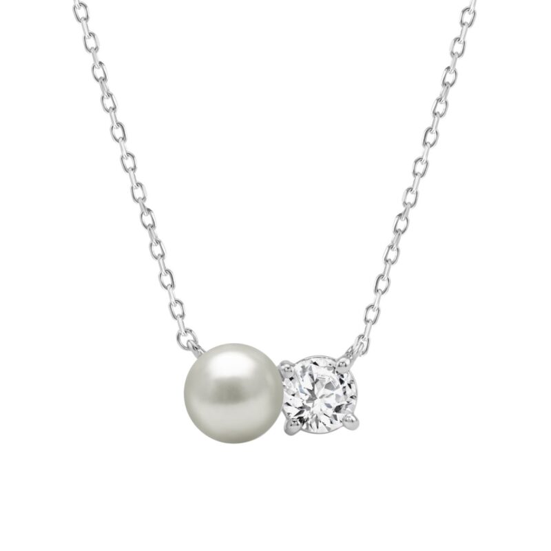10K White Gold Pearl & 1/4Ct Round Diamond Ladies Necklace Elegant Fine Fashion Jewelry Gift For Women (Color F-G Clarity Vs1/Vs2)