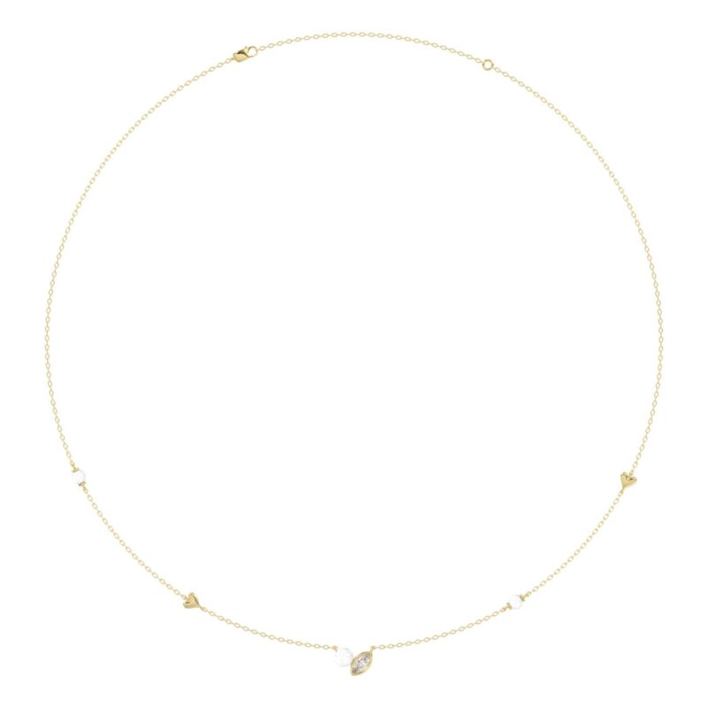10K Yellow Gold Pearl & Ladies Necklace 1/5CT Marquise Diamonds (Color F-G -Clarity VS1/VS2)