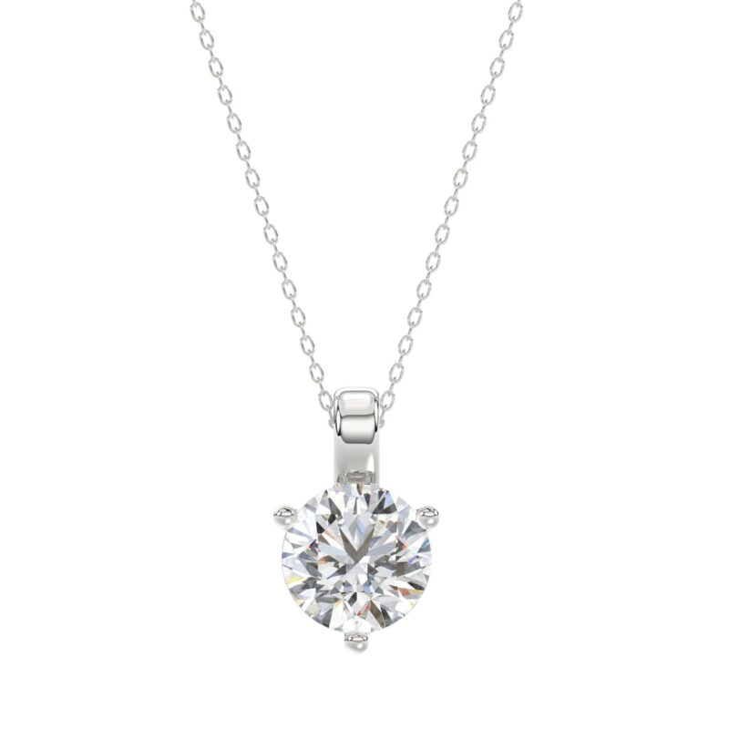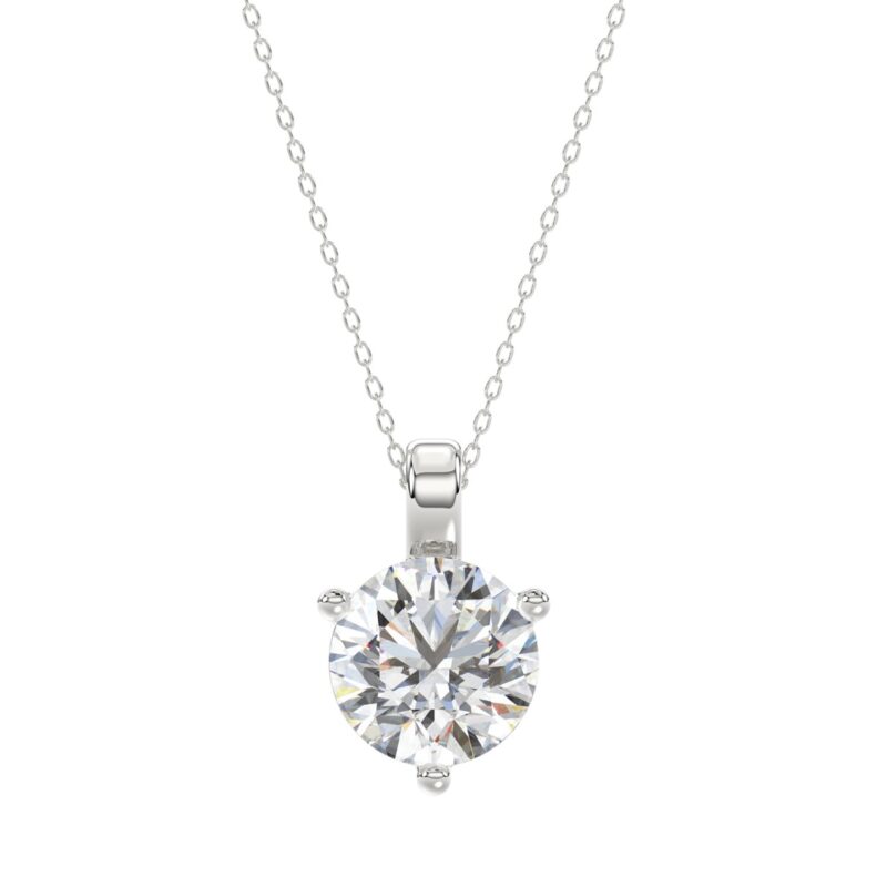 14K WHITE GOLD 2 1/2CT ROUND DIAMOND LADIES SOLITAIRE PENDANT WITH CHAIN