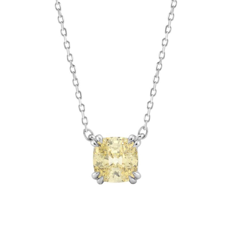 14K WHITE GOLD 2.00CT YELLOW CUSHION DIAMOND LADIES PENDANT