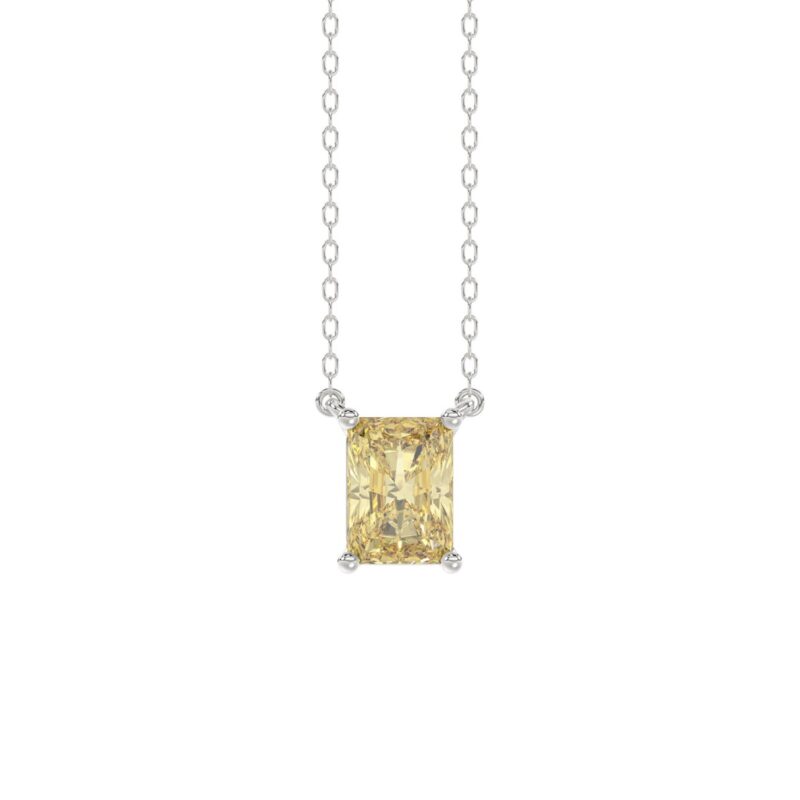 14K WHITE GOLD 1.00CT YELLOW RADIANT DIAMOND LADIES PENDANT