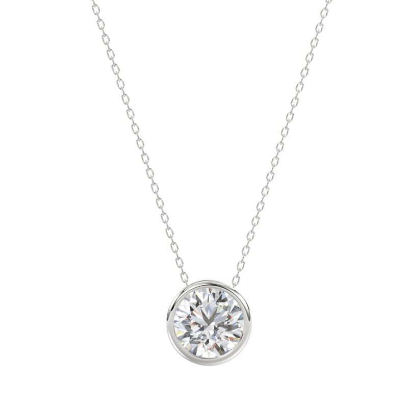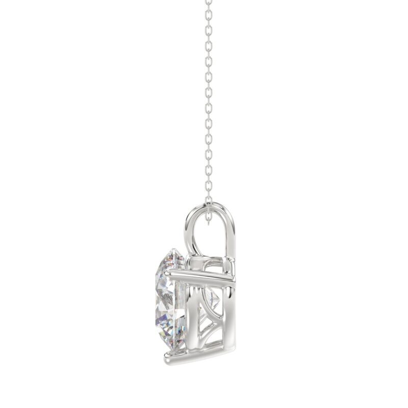 14K WHITE GOLD 1.00CT ROUND DIAMOND LADIES SOLITAIRE PENDANT WITH UNDER-PASS CHAIN (CENTER STONE ROUND DIAMOND 1CT)