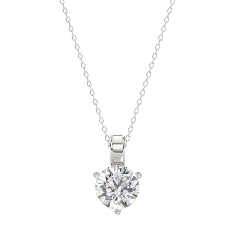 14K WHITE GOLD 1 1/2CT ROUND DIAMOND LADIES SOLITAIRE PENDANT WITH CHAIN