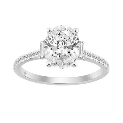 14K WHITE GOLD 1 3/4CT ROUND/BAGUETTE/OVAL DIAMOND LADIES RING (CENTER STONE OVAL DIAMOND 1 1/2CT)