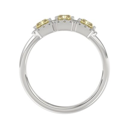 1 1/2CT Elegance Ring 14k Round/Radiant/Trapezoid Diamond White Gold 1.00CT Yellow Radiant Center stone (Color F-G -Clarity VS1/VS2)