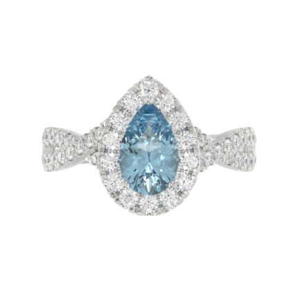 14K WHITE GOLD 1 3/4CT ROUND/PEAR DIAMOND LADIES RING (CENTER STONE PEAR BLUE DIAMOND 1CT)