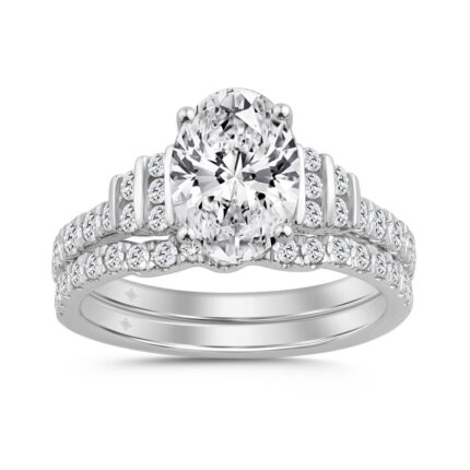 14K WHITE GOLD 2 3/4CT ROUND/OVAL DIAMOND LADIES BRIDAL SET (CENTER STONE OVAL DIAMOND 2CT)
