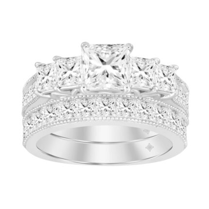 14K WHITE GOLD 3 1/2CT ROUND/PRINCESS DIAMOND LADIES BRIDAL SET (CENTER STONE PRINCESS DIAMOND 3.00CT)