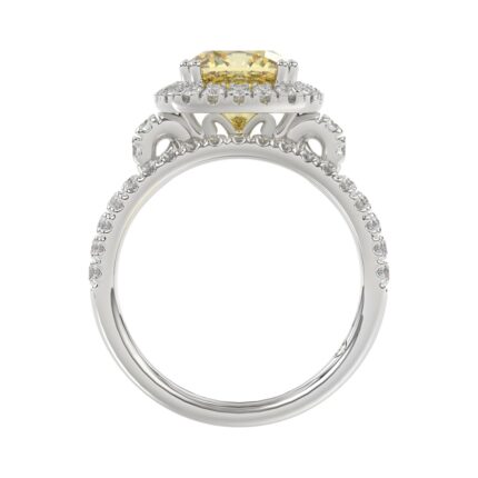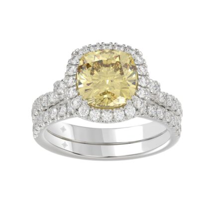 14K WHITE GOLD 3 3/4CT ROUND/CUSHION DIAMOND LADIES BRIDAL SET (CENTER STONE CUSHION YELLOW DIAMOND 3.00CT)