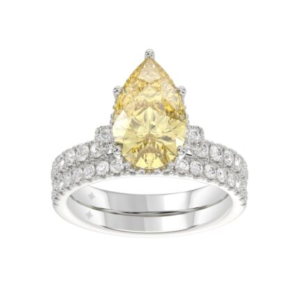 14K WHITE GOLD 3 3/4CT ROUND/PEAR DIAMOND LADIES BRIDAL SET (CENTER STONE PEAR YELLOW DIAMOND 3.00CT)