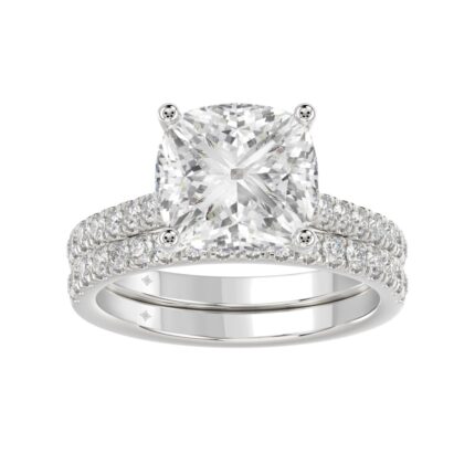 14K WHITE GOLD 3 1/3CT ROUND/CUSHION DIAMOND LADIES BRIDAL SET (CENTER STONE CUSHION DIAMOND 3.00CT)