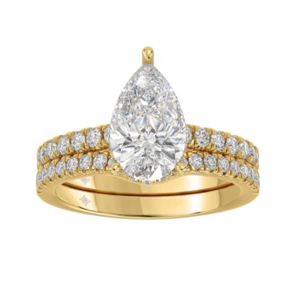 14K YELLOW GOLD 2 3/4CT ROUND/PEAR DIAMOND LADIES BRIDAL SET