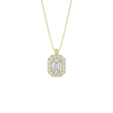 14K YELLOW GOLD 1 3/8CT ROUND EMERALD DIAMOND LADIES PENDANT WITH CHAIN (CENTER STONE EMERALD DIAMOND 1CT )