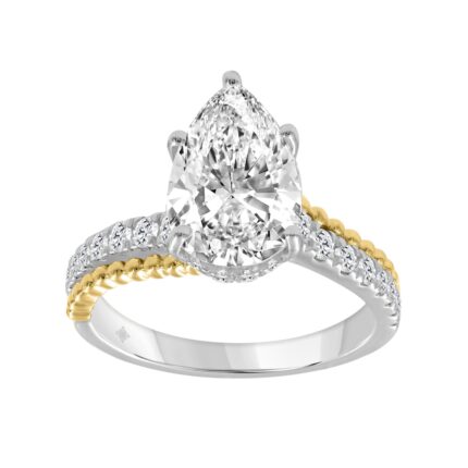 10K WHITE/YELLOW GOLD 3 1/2CT ROUND/PEAR DIAMOND LADIES RING (CENTER STONE PEAR DIAMOND 3CT)