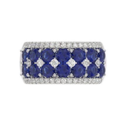 14K WHITE GOLD 4.00CT ROUND/ROUND BLUE SAPPHIRE DIAMOND LADIES RING