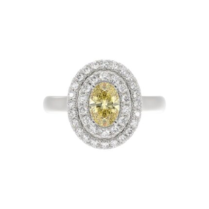 14K WHITE GOLD CRAFTED WITH 18K YELLOW GOLD SHANK 1 1/2CT ROUND/YELLOW OVAL DIAMOND LADIES RING