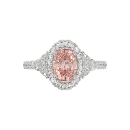 14K WHITE GOLD CRAFTED WITH 18K YELLOW GOLD SHANK 1 1/2CT ROUND/OVAL DIAMOND LADIES RING (CENTER STONE OVAL PINK DIAMOND 1.00CT)