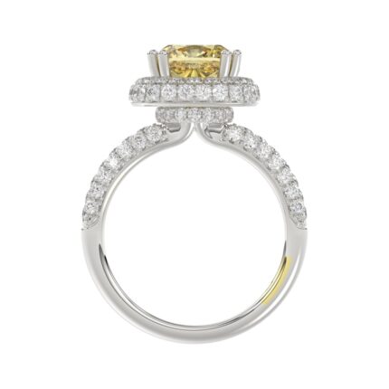 14K WHITE GOLD CRAFTED WITH 18K YELLOW GOLD SHANK 4.00CT ROUND/YELLOW CUSHION DIAMOND LADIES RING (CENTER STONE CUSHION YELLOW DIAMOND 3.00CT)